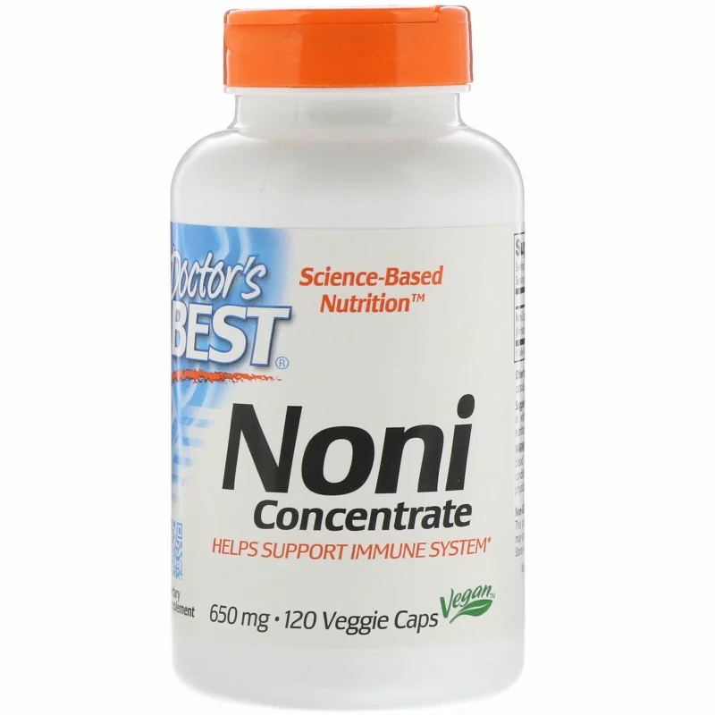 Doctor's Best Noni Concentrate 650mg 120vkaps - jest to naturalny suplement w postaci kapsułek wegańskich, zawierający w sobie najwyższej jakości koncentrat organicznych owoców noni, inaczej nazywanych owocami morwy indyjskiej.