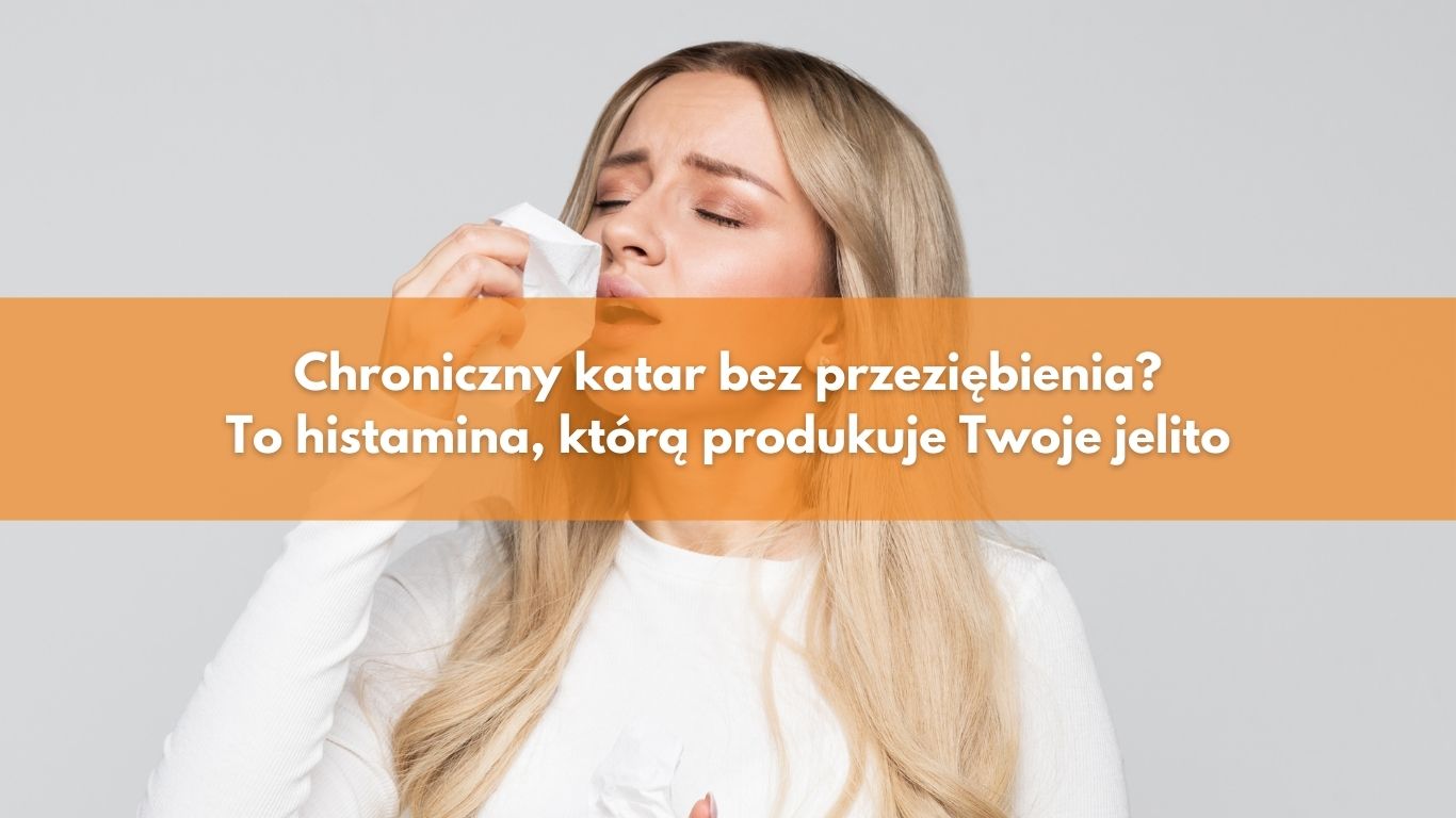 Chroniczny katar bez przeziębienia często ma swoje źródło nie w nosie, ale w jelitach — w postaci nadmiaru histaminy produkowanej przez bakterie jelitowe i wchłaniającej się przez nieszczelna barierę jelitową. To zamknięte błędne koło, które można przerwać.