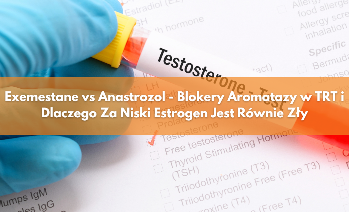 Blokery aromatazy – anastrozol i exemestane – są potężnymi narzędziami które mają swoje miejsce w zarządzaniu TRT, ale tylko kiedy są klinicznie konieczne. Konieczność to: wysokie poziomy estrogenu (>60 pg/ml) powodujące faktyczne objawy (ginekomastia, nadmierna retencja wody, emocjonalna labilność) mimo optymalizacji protokołu TRT (odpowiednia dawka, częste iniekcje, zdrowa waga).