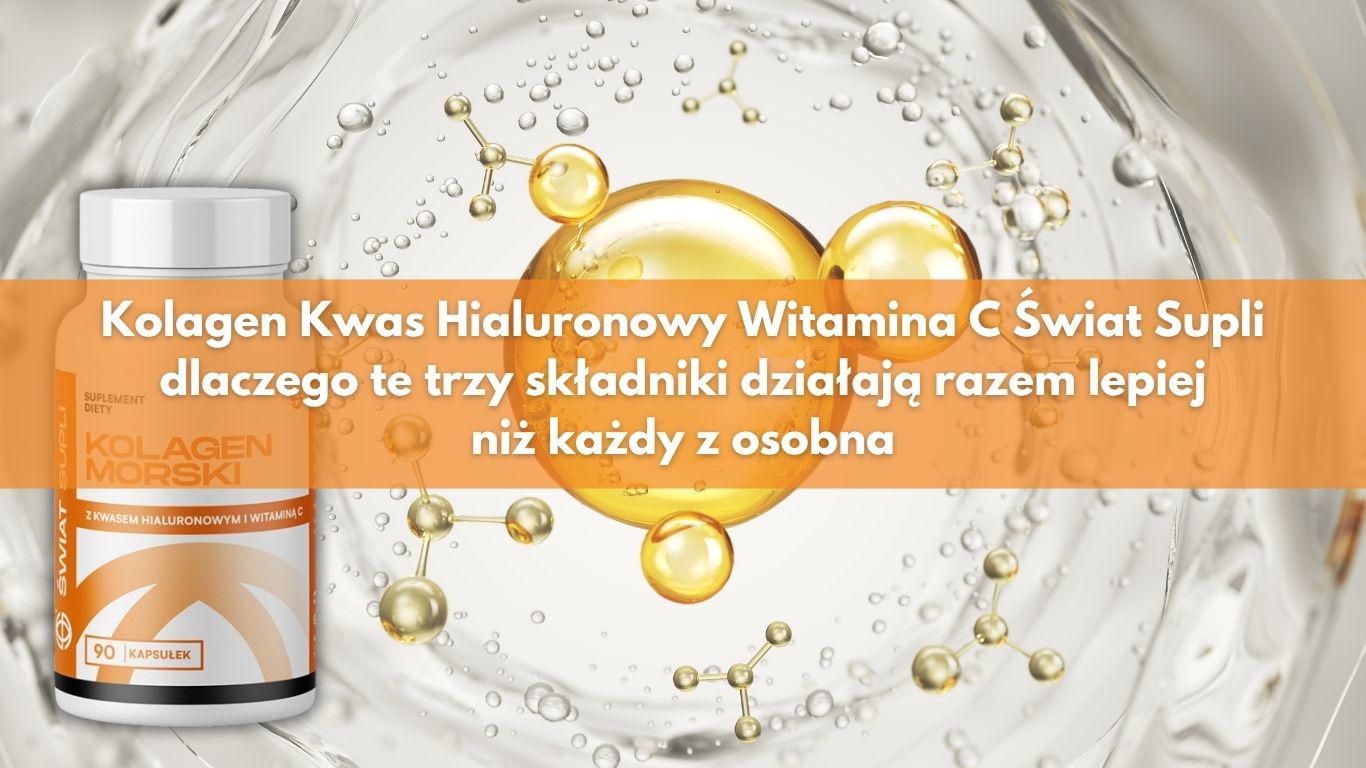 Po 25. roku życia organizm nie przestaje produkować kolagenu nagle, ale zaczyna robić to coraz mniej wydajnie. To proces cichy i rozciągnięty w czasie, dlatego przez długi okres łatwo go ignorować. Najpierw pojawia się gorsza sprężystość skóry, później większa sztywność po treningu, wolniejsza regeneracja ścięgien, mniejszy komfort stawów albo wrażenie, że tkanka łączna „nie nadąża” za stylem życia. Właśnie dlatego temat Kolagen Kwas Hialuronowy Witamina C Świat Supli nie sprowadza się do kosmetycznego trendu, ale do biologii tkanek, które starzeją się, przeciążają i regenerują wolniej z każdym rokiem.