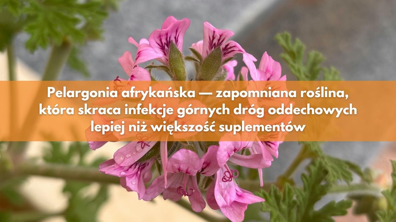 Pelargonia afrykańska ma jeden z najlepszych profili dowodów naukowych spośród roślinnych suplementów na infekcje — i to w badaniach randomizowanych z grupą kontrolną.