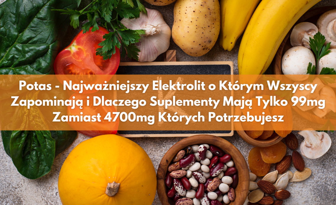 W tym artykule wyjaśnię Ci dokładnie co potas robi w Twoim organizmie na poziomie molekularnym, dlaczego jego niedobór powoduje skurcze mięśni, arytmie serca i chroniczne zmęczenie. Pokażę Ci skąd wzięło się ograniczenie 99 mg w suplementach i jakie realne ryzyka stoją za tą decyzją. I na końcu dam Ci konkretną listę pokarmów które pozwolą Ci osiągnąć optymalne spożycie bez ryzyka przedawkowania.