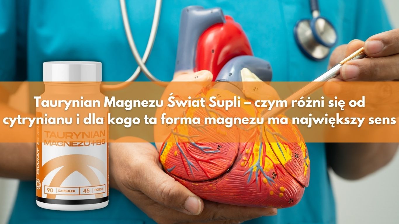 Jeśli ktoś mówi, że „bierze magnez”, to w praktyce nie mówi jeszcze niczego ważnego. Różnica między formami magnezu jest realna, a wybór konkretnej postaci powinien wynikać z celu suplementacji, nie z przypadku. Właśnie dlatego temat Taurynian Magnezu Świat Supli budzi zainteresowanie osób, które chcą czegoś więcej niż ogólnego „uzupełnienia magnezu”. Taurynian to nie tylko nośnik magnezu. To połączenie magnezu z tauryną – aminokwasem szczególnie obecnym w sercu, mózgu i mięśniach – dlatego ta forma jest zwykle rozpatrywana przede wszystkim w kontekście układu sercowo-naczyniowego i nerwowego. Jednocześnie trzeba uczciwie zaznaczyć, że bezpośrednich badań klinicznych na samym taurynianie magnezu u ludzi jest mniej niż na cytrynianie czy glicynianie; jego przewaga wynika głównie z biologicznego sensu połączenia magnezu i tauryny oraz z badań nad tymi składnikami osobno.