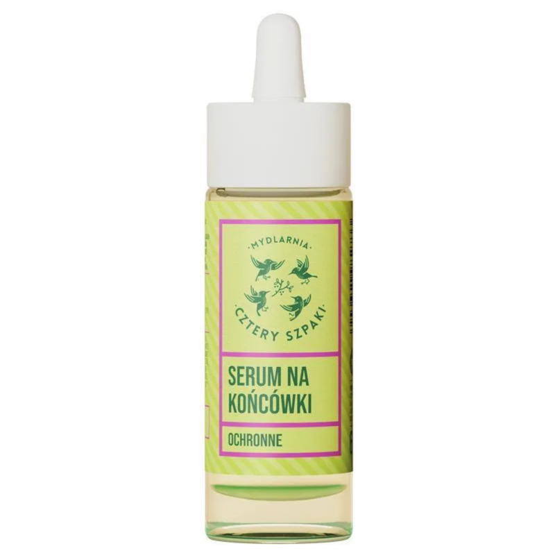 Poznaj Serum na końcówki ochronne 4 Szpaki 30 ml – naturalny eliksir, który odżywia, regeneruje i chroni Twoje włosy każdego dnia. Formuła oparta na olejach ryżowym, z pestek granatu i frakcjonowanym kokosowym zapewnia intensywne nawilżenie, jednocześnie wygładzając i nadając pasmom miękkość oraz jedwabisty połysk.