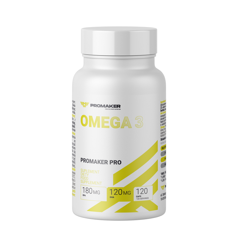 Promaker Omega 3 to wysokiej jakości suplement diety zawierający oczyszczony olej rybi bogaty w kwasy EPA i DHA. Te niezbędne wielonienasycone kwasy tłuszczowe wspierają serce, mózg oraz wzrok, poprawiając codzienne funkcjonowanie całego organizmu.