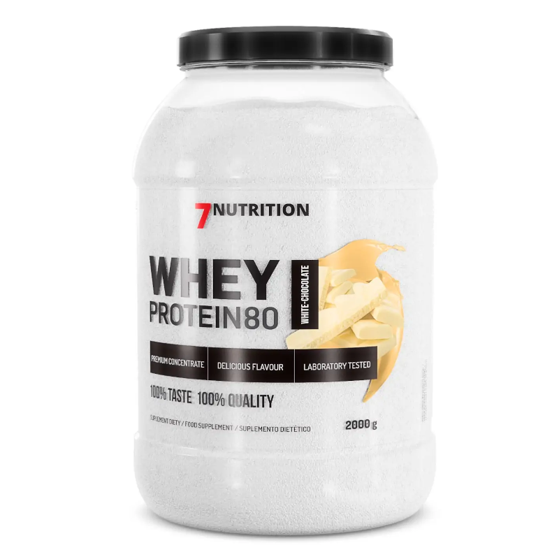 7Nutrition Whey Protein 80 2000g - Odżywka Białkowa Koncentrat zawiera wysokiej jakości białka, które pomagają w budowaniu masy mięśniowej i przyspieszają regenerację po treningu. Białko to zawiera aminokwasy, które są niezbędne do wspierania wzrostu mięśni i pomagają w regeneracji. Produkt jest bardzo dobrze przyswajany przez organizm i zawiera też optymalną ilość białka i innych składników odżywczych, które są niezbędne do prawidłowego funkcjonowania.