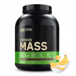 Optimum Nutrition Serious Mass 2,7kg - Najwyższej jakości suplement typu gainer mający na celu nasilić przyrost masy mięśniowej dzięki dostarczeniu naszemu organizmowi niezbędnych do tego makro i mikro składników. Produkt w każdej porcji zawiera aż 1250kcal, a w tym 50g białka dostarczanego w 3 różnych rodzajach ( serwatka, kazeina oraz białka jaja) są to składniki o różnym okresie wchłaniania. Suplement ten zawiera znikomą ilość cukru oraz tłuszczu dzięki czemu mamy pewność że wpłynie on odpowiednio na nasz metabolizm nie powodując tym samym "podlania" w okresie masowym.