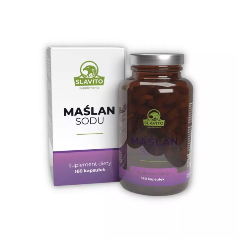 Slavito Maślan Sodu 160kaps to suplement diety wspomagający pracę układu pokarmowego. Zawiera czysty maślan sodu, który działa korzystnie na florę jelitową, regeneruje nabłonek jelit i łagodzi stany zapalne.