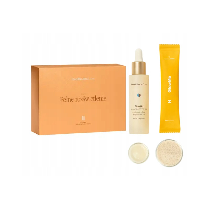 Health Labs Care Pełne Rozświetlenie to kompleksowy zestaw beauty, który łączy pielęgnację zewnętrzną i wewnętrzną. Stworzony dla cery zmęczonej, pozbawionej energii i jednolitego kolorytu, przywraca skórze świeżość, promienność i zdrowy glow każdego dnia.