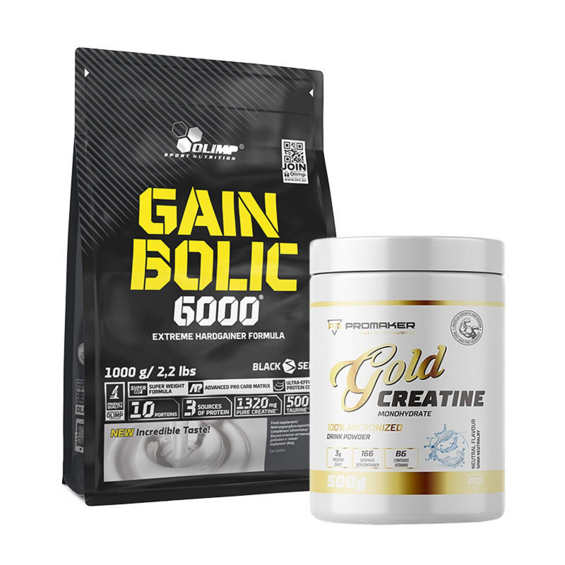 Zestaw stworzony z myślą o każdej osobie aktywnej fizycznie, pragnącej zwiększyć masę ciała oraz podnieść poziom tkanki mięśniowej. W skład zestawu wchodzą najwyższej jakości odżywka węglowodanowa Gain Bolic od firmy Olimp dostarczająca naszemu organizmowi niezbędnych składników do budowania masy oraz najczystszy monohydrat kreatyny w formie proszku. Kreatyna pomoże nam zmaksymalizować nasze osiągi wysiłkowe i wesprzeć proces regeneracji organizmu po intensywnych jednostkach treningowych.