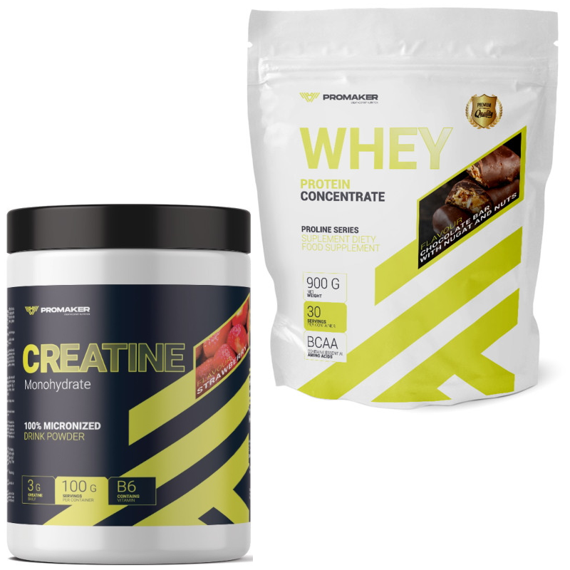 Marzysz o spektakularnych efektach treningowych? Zestaw Promaker Creatine Monohydrate 300g o pysznym smaku truskawkowym oraz Whey Protein Proline 900g to idealne rozwiązanie dla każdego, kto chce budować mięśnie, zwiększyć siłę i regenerować organizm w rekordowym tempie. Nie trać czasu na nieskuteczne suplementy – wybierz połączenie, które działa!