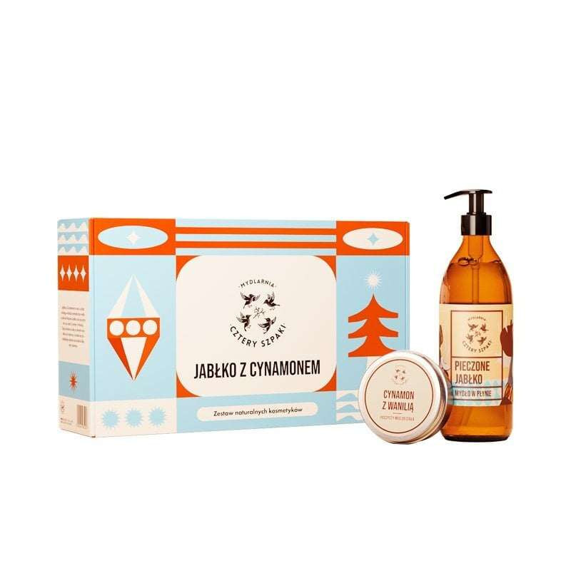 Zestaw Jabłko z Cynamonem od 4 Szpaki to doskonały wybór na zimowe dni, pełne relaksu i przyjemności. Idealny pomysł na prezent, który wprowadza w świąteczny nastrój. Zawiera dwa wyjątkowe produkty, które otulą Twoją skórę przyjemnym zapachem i zapewnią jej nawilżenie oraz regenerację.