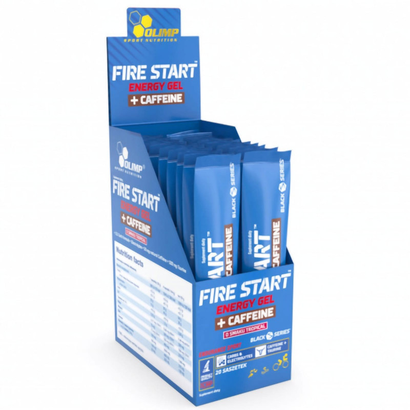 Olimp Fire Start Energy + Caffeine 36g to innowacyjny żel energetyczny, który dostarcza dużą węglowodanów wraz z kofeiną. Dzięki temu zapewnia maksymalną wydajność energetyczną, ograniczając jednocześnie ryzyko dyskomfortu żołądkowo-jelitowego. Wyjątkowy smak dodatkowo umila korzystanie z produktu w trakcie intensywnych treningów i zawodów.